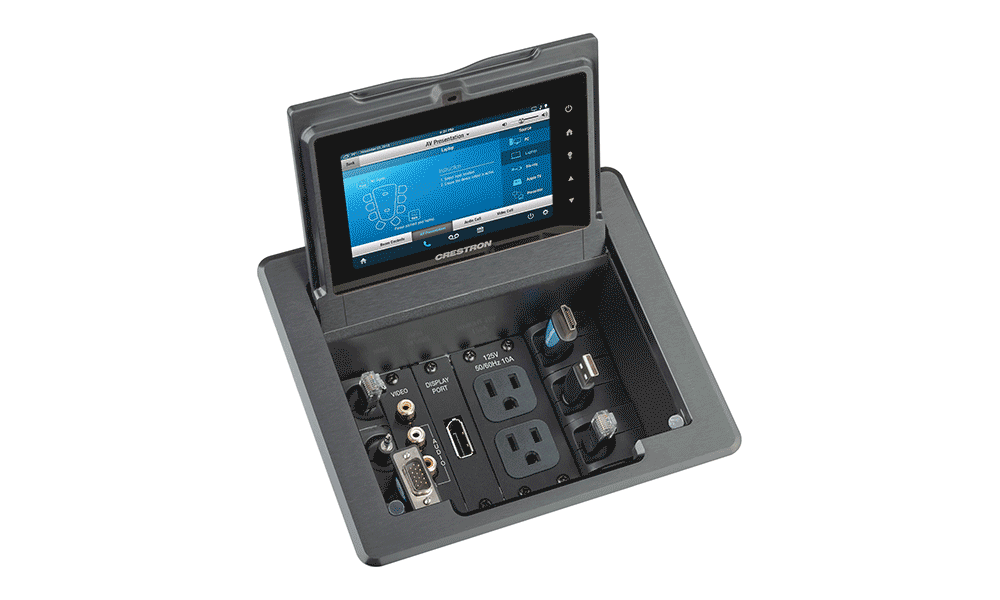 Ce boitier de table Crestron offre une solution de contrôle et de connectivité encastrée avec un design très raffiné et contemporain, et est entièrement configurable.