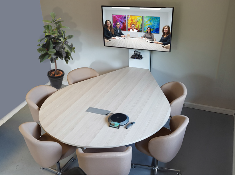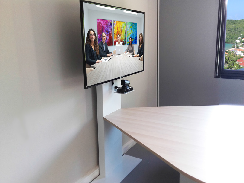 Table de réunion tout-en-un ergonomique dédiées à la visioconférence et aux présentations